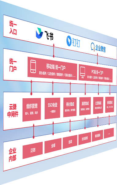 对协作平台提供支持服务,,支持企业应用与协作平台对接,,,,包含组织同步、、、消息集成、、、、待办集成等。。支持目前主流的协作平台:钉钉、、企微和飞书。。