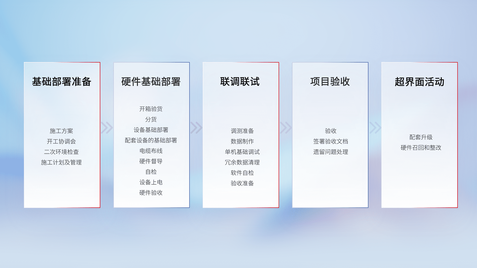 从基础部署准备、、、、硬件基础部署、、联调联试、、项目验收、、越界面活动的全过程可追溯,,保证施工质量和进度。。。。